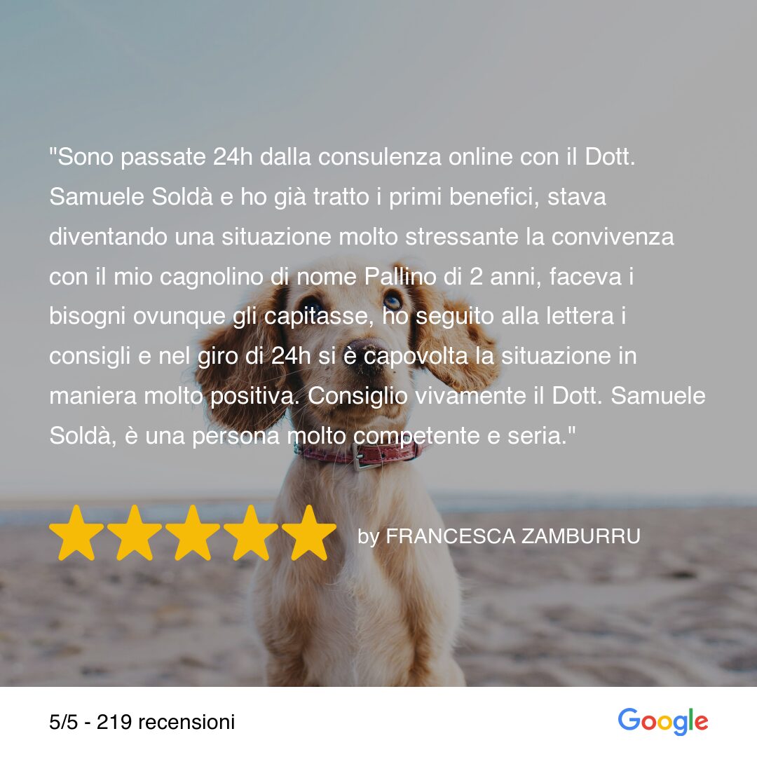 Puoi prenotare direttamente online. Se hai dubbi, scrivimi su WhatsApp per capire quale consulenza è più adatta al tuo cane.